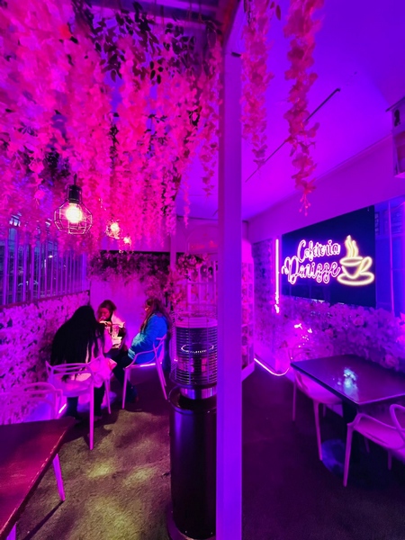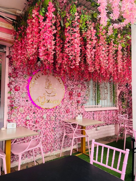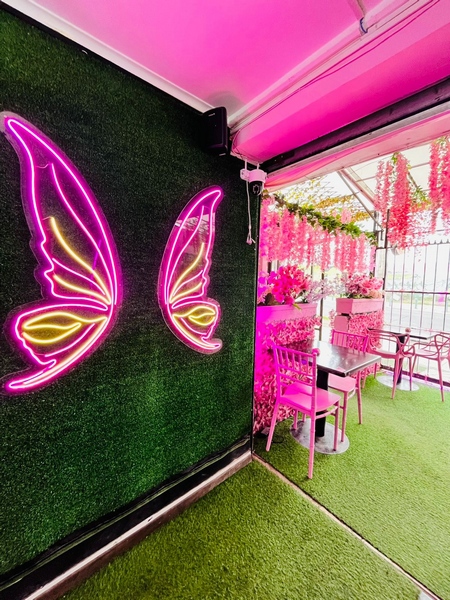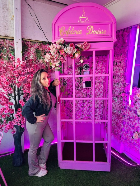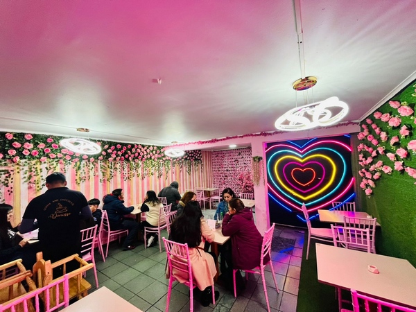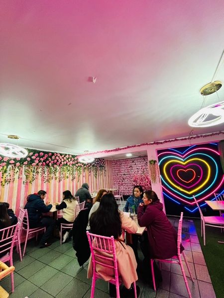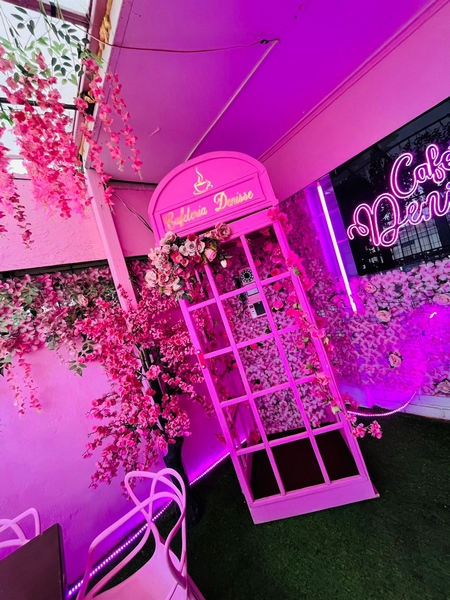 La inspiración fue básicamente porque la verdad es que Denise, quería tener una cafetería, pero quería darle un estilo que se distinguiera de lo habitual o lo clásico. Es por eso que eligió las tonalidades que implementamos en fachada y estructura general y eligió el sector. Si bien estamos en una comuna bien popular, ella eligió los colores rosas. Identificarla para que las mujeres tengan su sector, ya que por acá se localizan bares, schoperías, cosas así. Y bueno, Denise quiso tener un lugar especial para todas las mujeres.