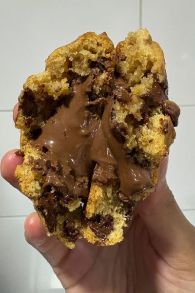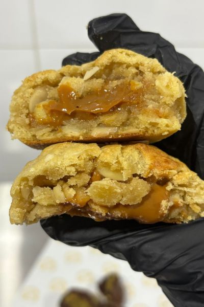 El primer sabor que desarrollé fue el más clásico de todos: la galleta de chips de chocolate. Pero quise darle mi propio sello, así que decidí rellenarla con Nutella. Cuando la probé con mi familia y amigos, inmediatamente se convirtió en la favorita de muchos. A mi sobrino, por ejemplo, le encanta, y cada vez que nos vemos siempre me pide sus galletas de Nutella.