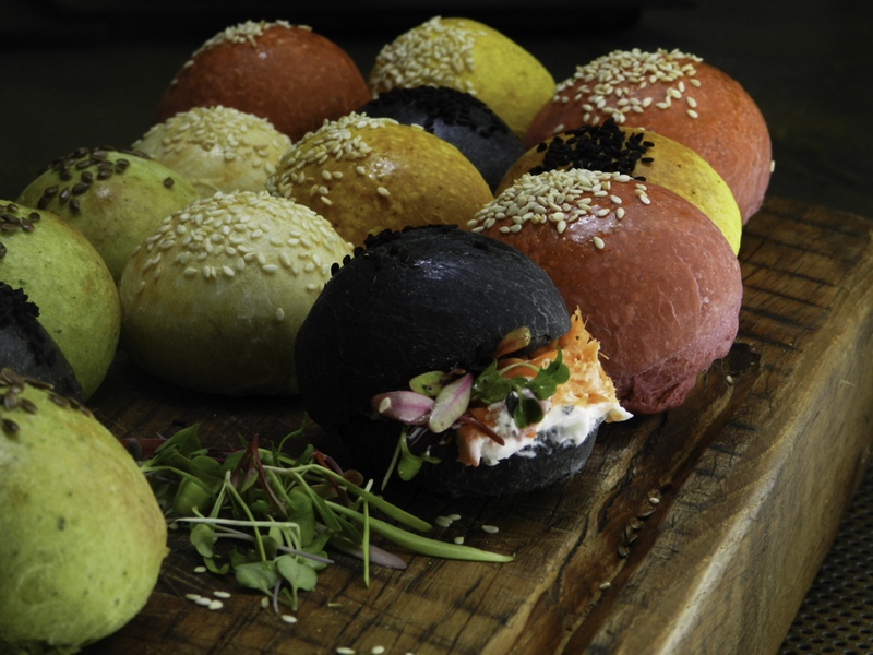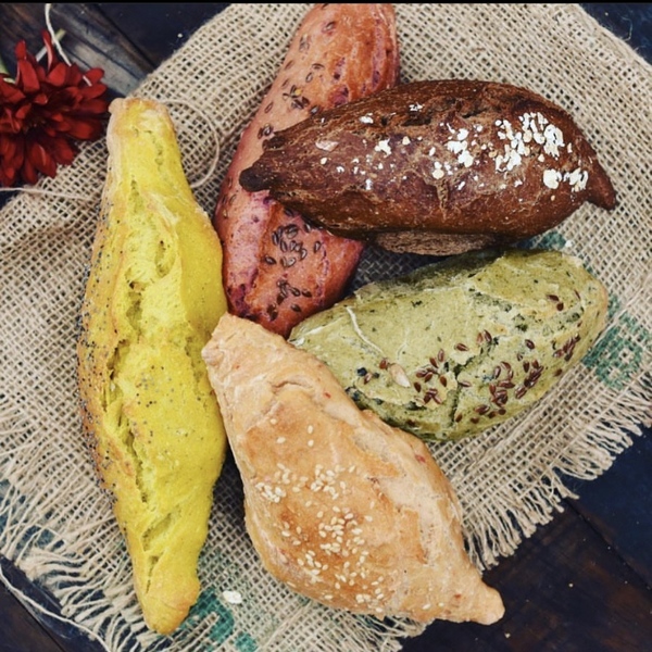Fuimos de los primeros en lanzar un pan con nuestro sello estampado en el mismo pan, que lo hace memorable hasta el día de hoy. Además, exploramos rellenos y combinaciones de sabor que van más allá de lo esperado —desde notas más tradicionales hasta mezclas más contemporáneas— siempre respetando el equilibrio con la masa. Y llevamos esa creatividad también a lo visual: panes de colores hechos con vegetales naturales que transforman la mesa y despiertan curiosidad incluso antes del primer bocado.
