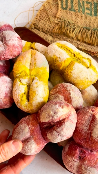 También exploramos el pan desde lo visual y lo sensorial: creamos panes de colores usando vegetales naturales —betarraga, cúrcuma, espinaca— que no solo aportan color, sino también matices de sabor y origen. Es una forma de sorprender, pero también de conectar con lo que es real. Y algo que nos encanta: ver cómo muchas personas eligen nuestros panes como regalo. En vez de llegar con un chocolate o algo esperado, llegan con pan. Un pan vivo, hecho con tiempo.